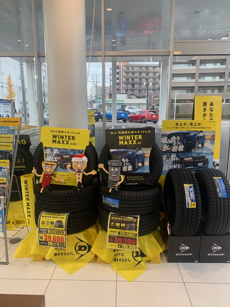 現在は原尾島店ではダンロップさんのスタッドレスタイヤを展示しております!