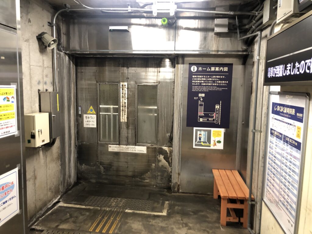 そして、出口を出てみると、無人駅とは、思えない、頑丈な自動扉に囲まれた、待合室があります。