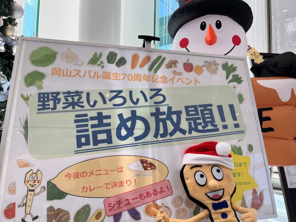 先週から始まりした岡山スバル70周年を記念して、じゃが芋、人参、玉ねぎの詰め放題企画を今週も土曜日と日曜日限定で開催します。