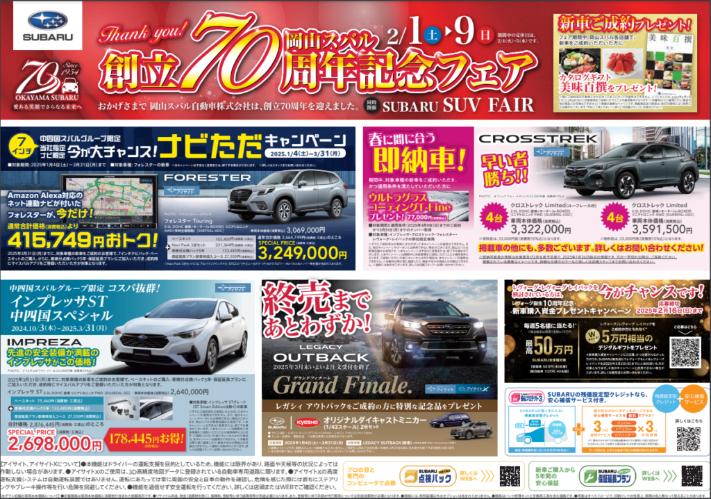 いつも岡山スバル 岡山原尾島店のHPをご覧いただきありがとうございます!