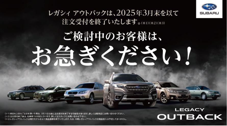 レガシィアウトバックがこの3月末を以て注文の受付を終了いたします!!(T^T)