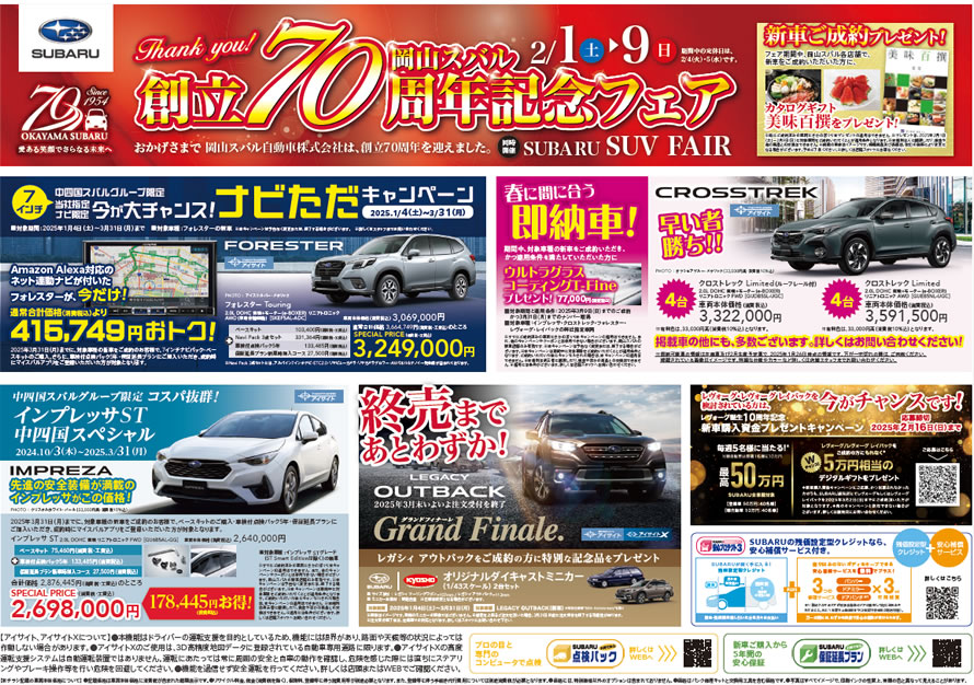 今、岡山スバルが創立70周年ということをご存知でしょうか?