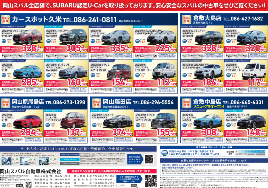 いつも岡山スバル 岡山原尾島店のHPをご覧いただきありがとうございます。
