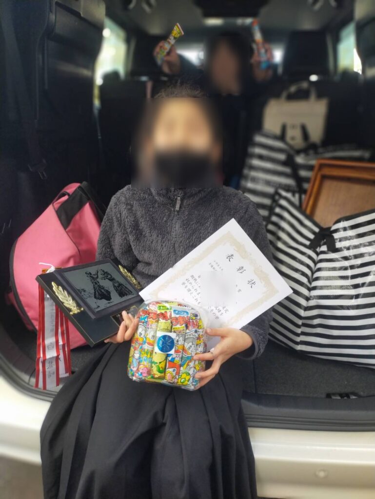 楯と表彰状をもらい満面の笑顔!(^^)!