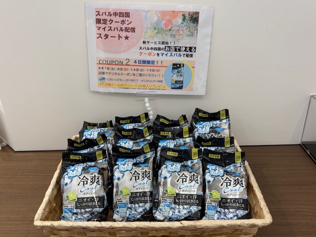 ②6月14日(土)15日(日)にはクーポンご提示で、この時期にうれしい!クールボディーシートをプレゼント!
