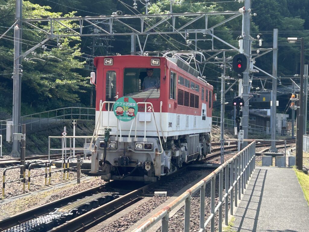 また、この井川線には日本一の急勾配の区間があり、その区間を手助けする機関車があります。この機関車も日本で観れるのはここだけです。