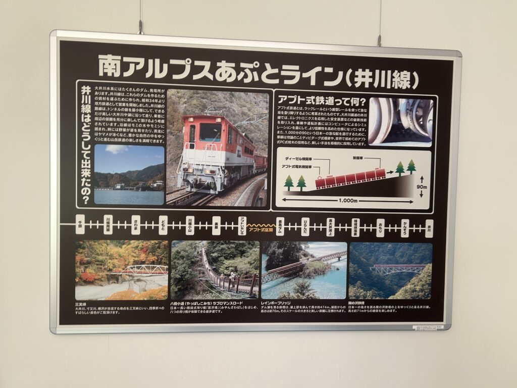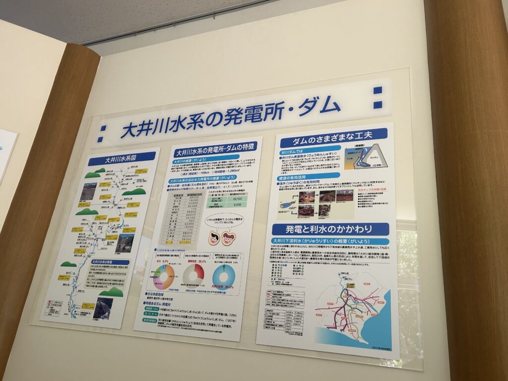 近くには井川展示館があり、井川ダム建設の歴史や水力発電の仕組みを伝えるコーナーなどがあり、映像で分かりやすく学ぶことが出来ます。