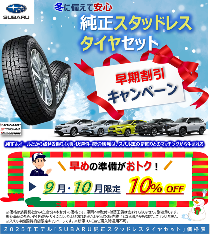 この9月10月にスタッドレスタイヤセットご注文いただくと、