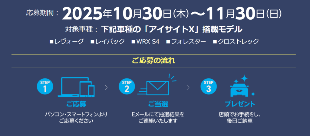 SUBARUおオフィシャルサイトから簡単に応募できます!