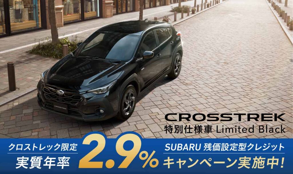 さらに今ならLimited Blackの登場を記念して、クロストレック全グレード対象のお得なキャンペーンも実施中。残価設定型クレジットが通常は実質年率3.9%のところ、今なら実質年率2.9%なので、
