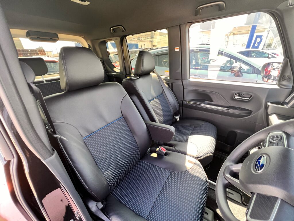 シートはレザー素材部分の面積を拡大するとともに、ファブリック部分はブルー生地を採用して上質でスポーティさを際立てております。