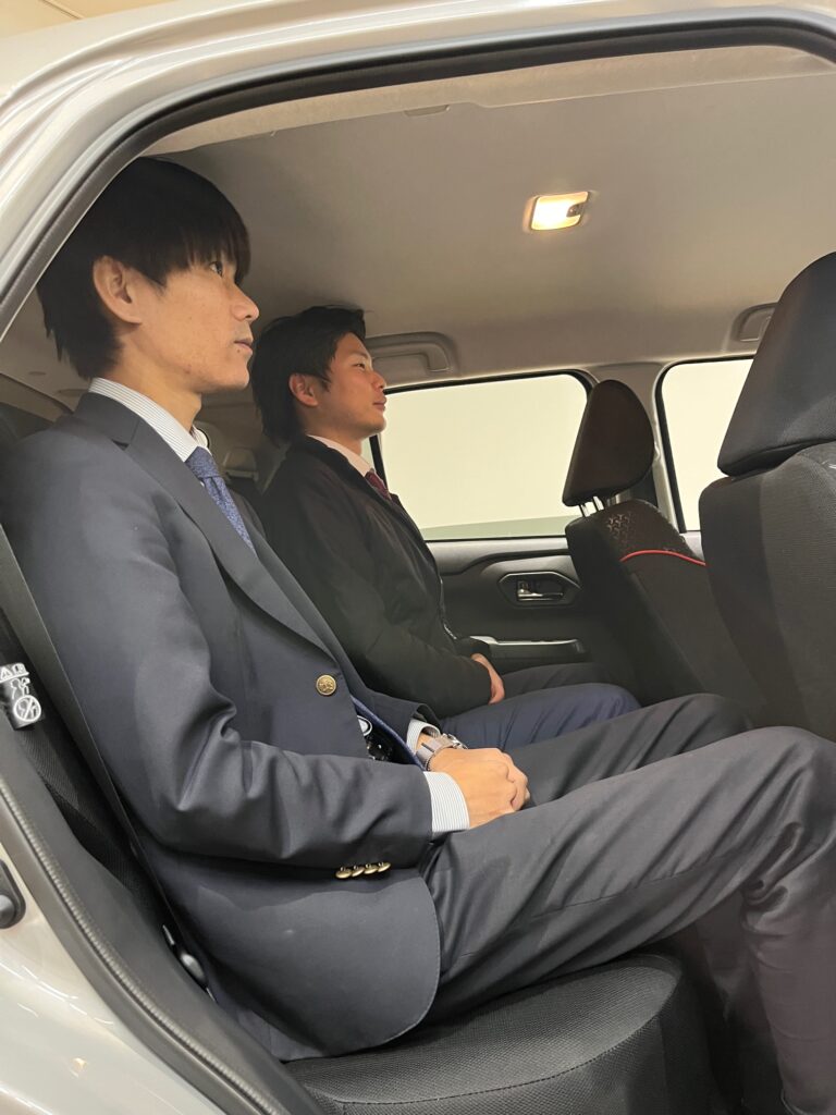 身長180cmの二司CAが後ろに乗ってこんな感じ!充分な広さです。
