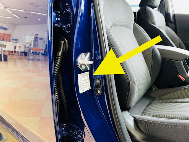 スバルの車はほとんどが運転席側のドアの位置にステッカーがあります