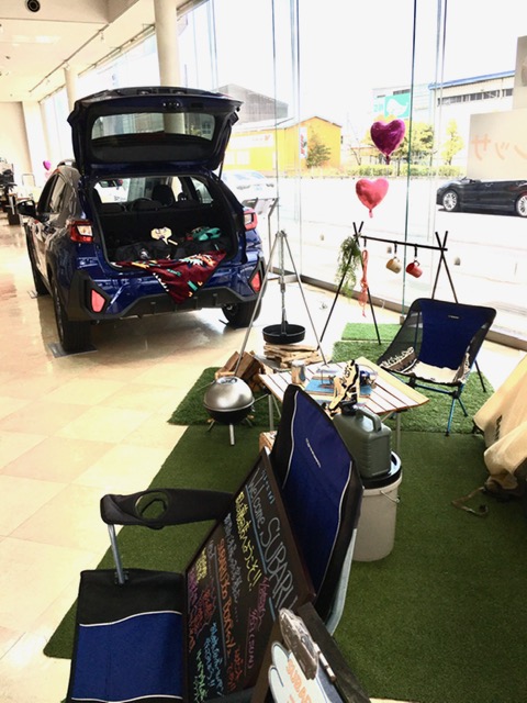藤田店では、クロストレックをアウトドア風に展示してみました。