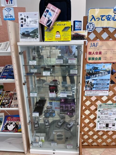 また、店頭にもオンラインショップ用品のカタログやグッズを置いてます