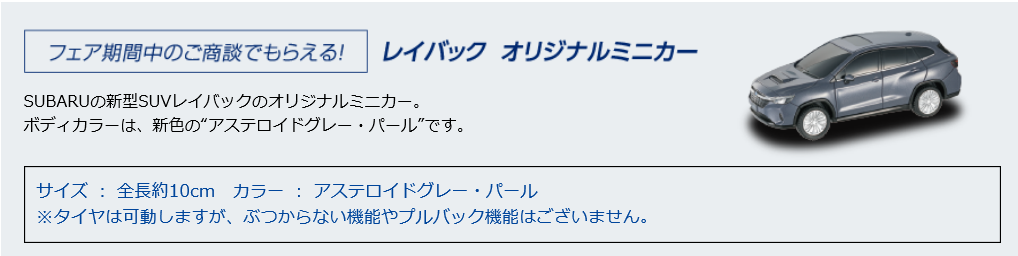 期間中商談にてオリジナルミニカーをプレゼントしていますので是非岡山藤田店にご来店ください。