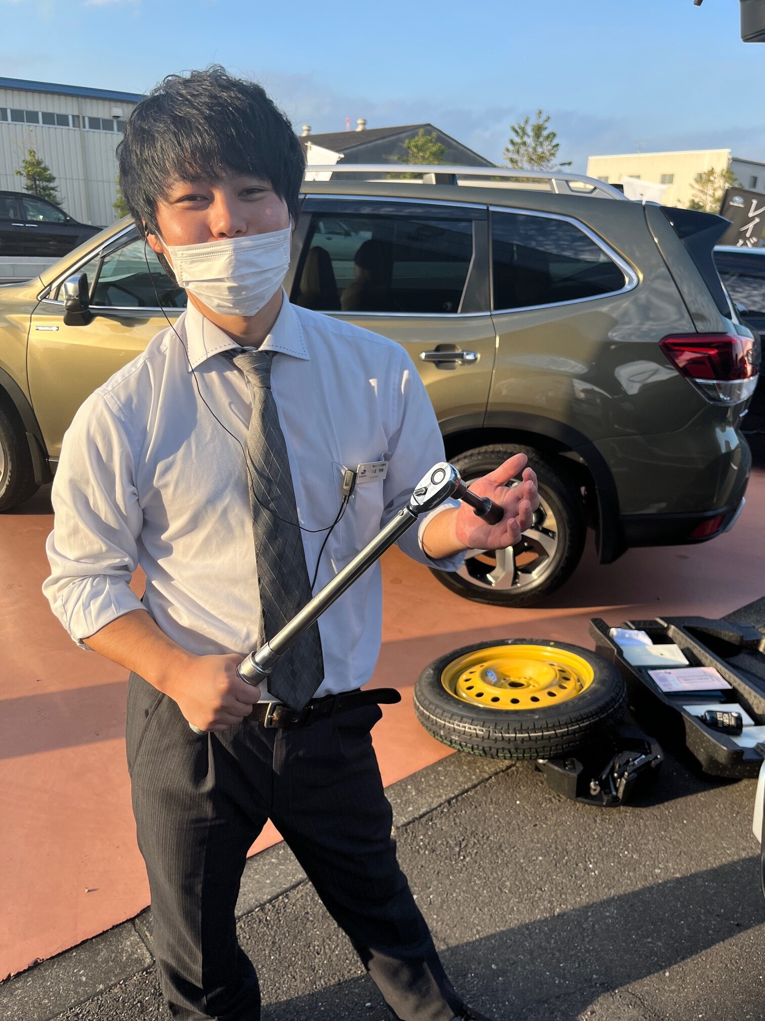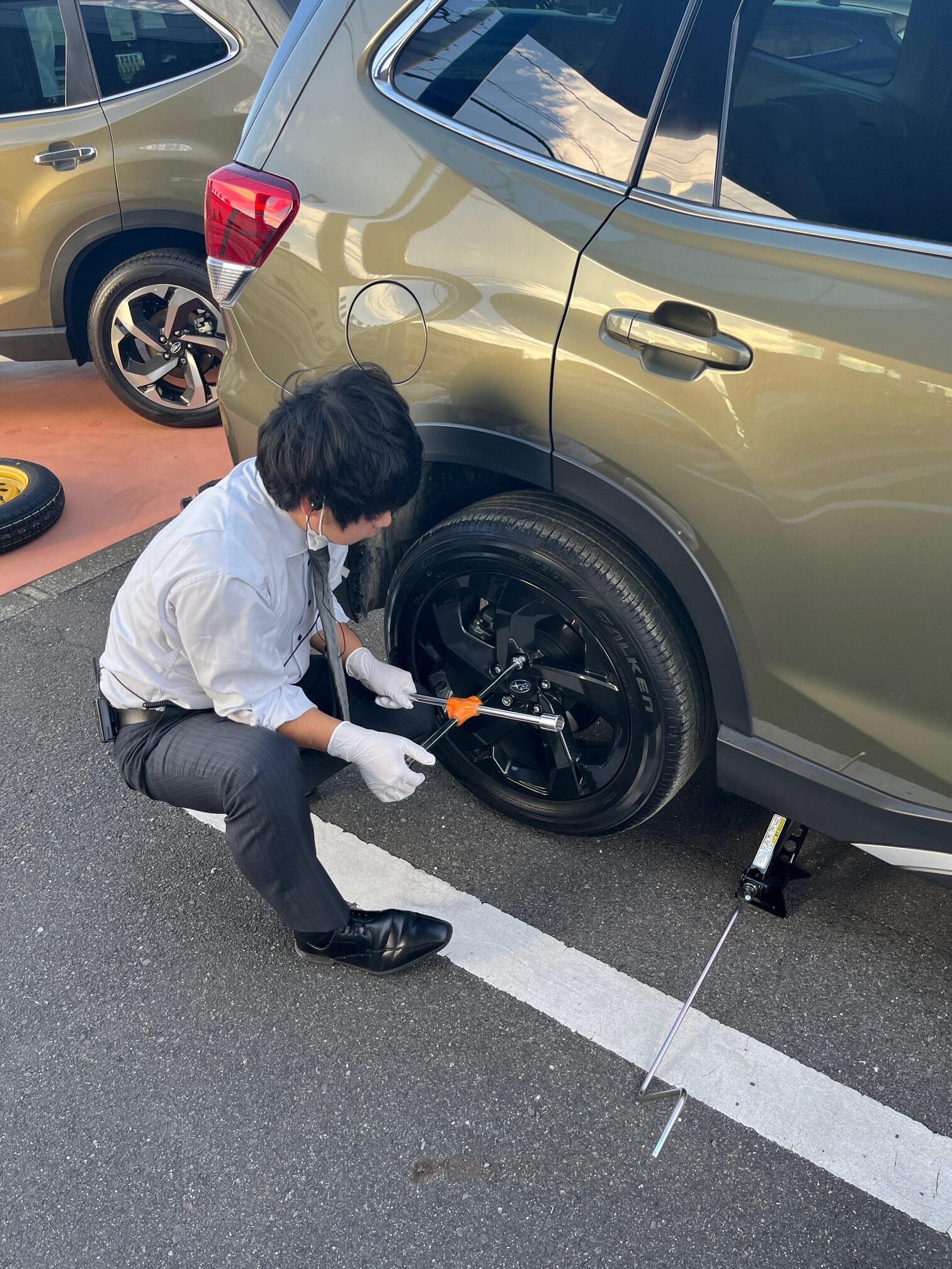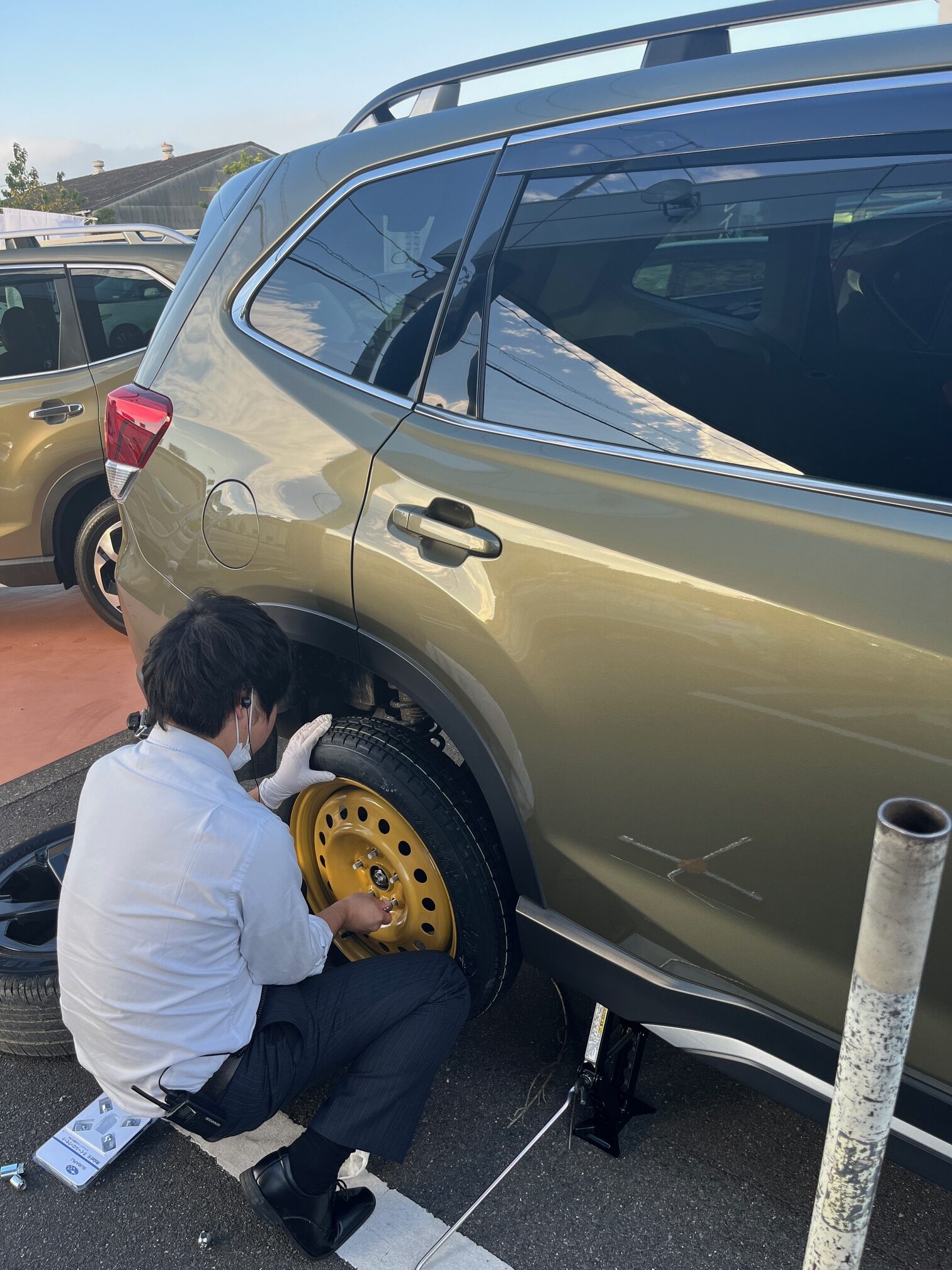 っていう間に小倉CA、テンパータイヤを着けはじめちゃいました。