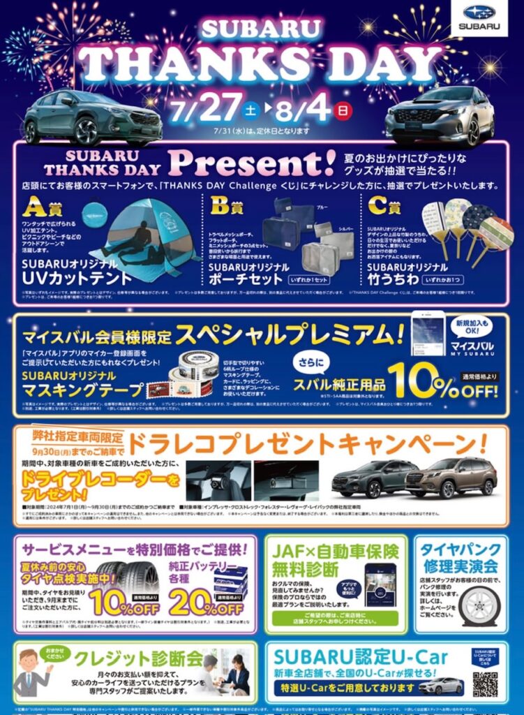 先週より開催されておりますSUBARU THANKS DAYですがたくさんの方々にお越しいただきました!
