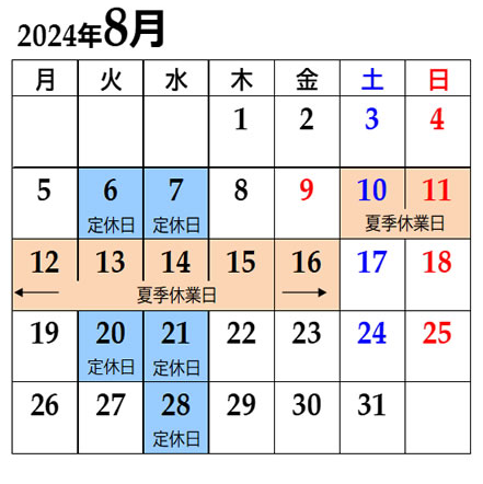 誠に勝手ながら8月10日(土)~8月16日(金)まで休業日とさせていただきます。
