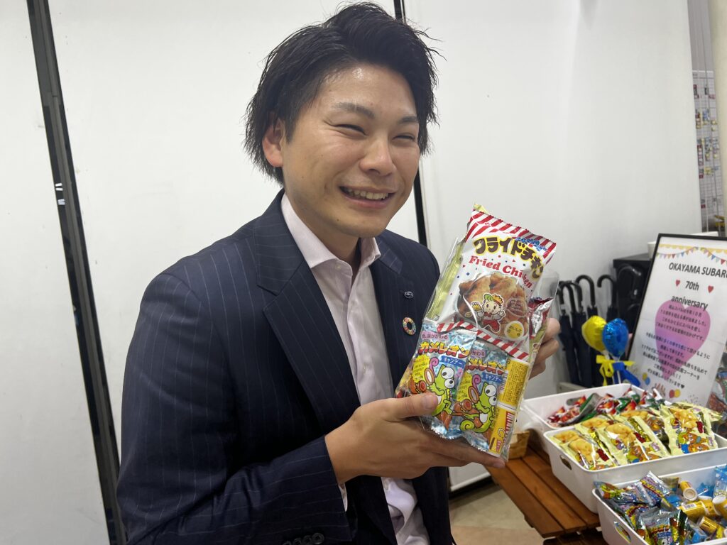 岡山スバルは本年で70周年を迎えるにあたり藤田店では、お菓子の詰め放題を行いました!