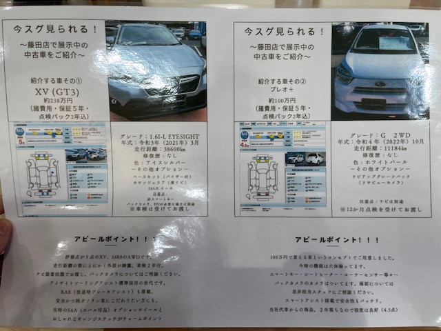いつもスバル岡山藤田店のHPを閲覧頂きありがとございます!
