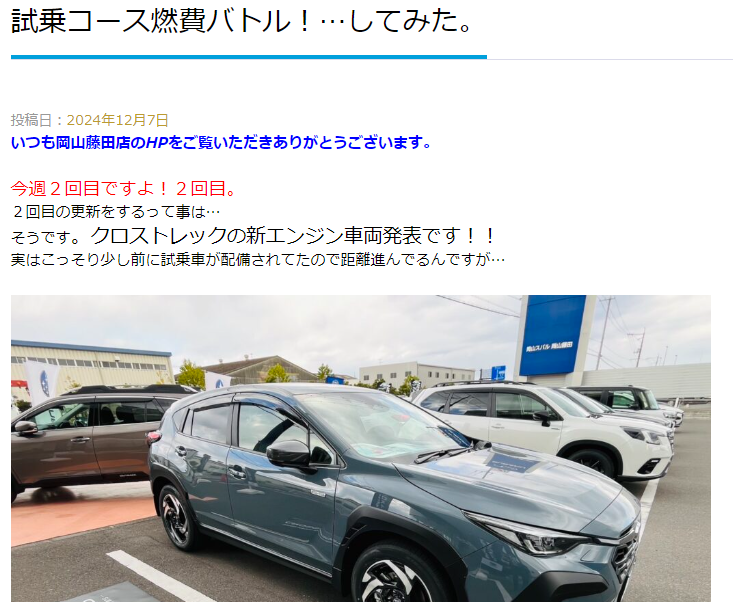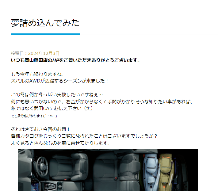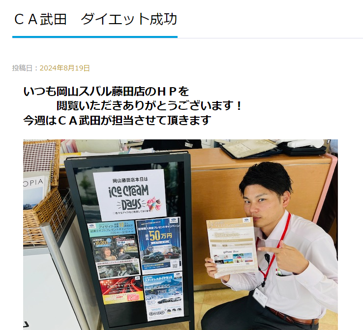 いつも岡山藤田店のHPをご覧いただきありがとうございます。