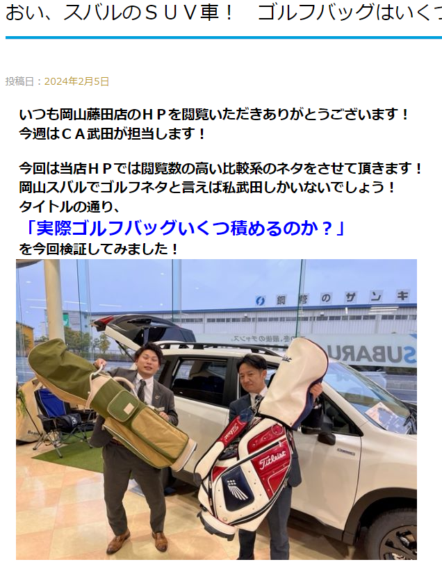 2.おい、スバルのSUV車! ゴルフバッグはいくつ積めるんだい!!