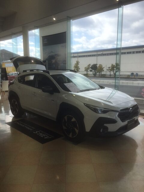 只今、岡山藤田店ではショウルームにMHEVクロストレックを展示しています。