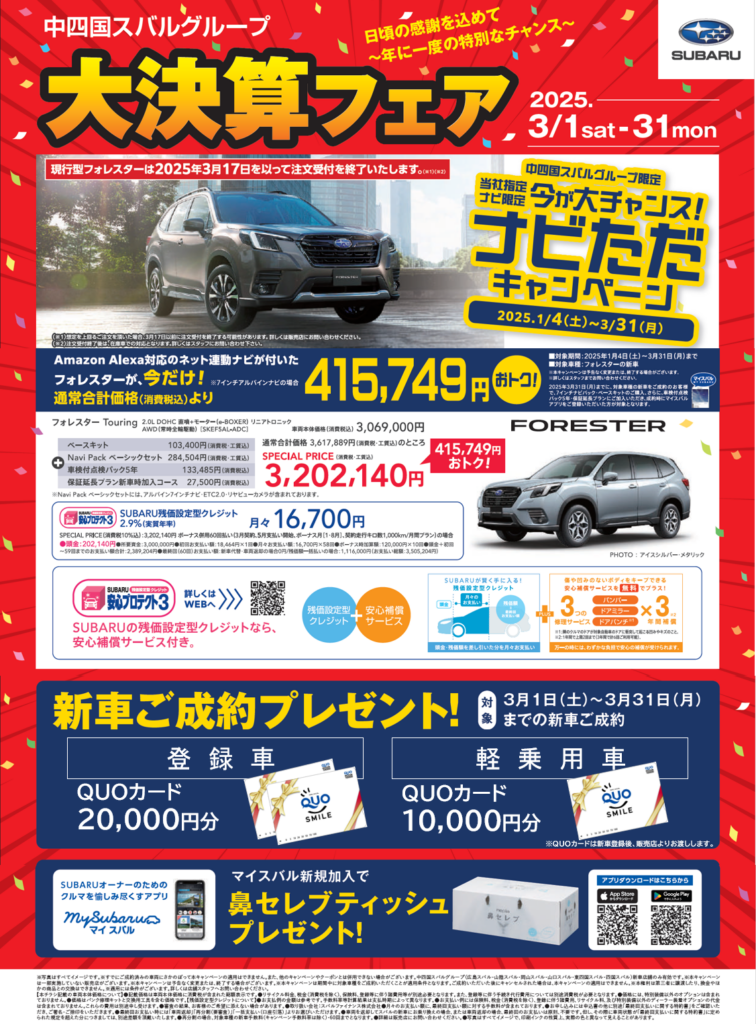 フォレスターのナビが物によっては無くなってきました。検討中の方はお早めに!