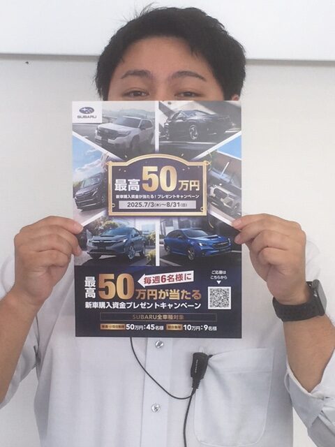 新車購入資金が毎週6名様に当たるキャンペーンが始まりました。