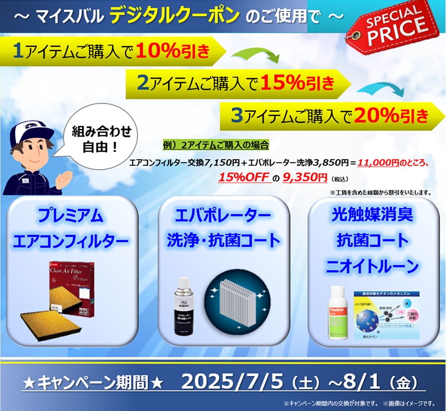 現在、マイスバルにて「夏の車内快適キャンペーン」として