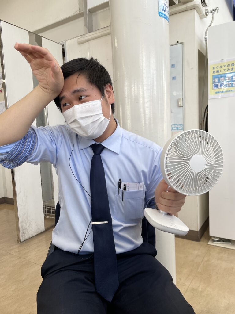是友CAは早くも汗をかき、上着を脱ぎ、扇風機をかけながらながら仕事にいそしんでいます![]()