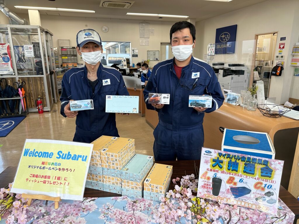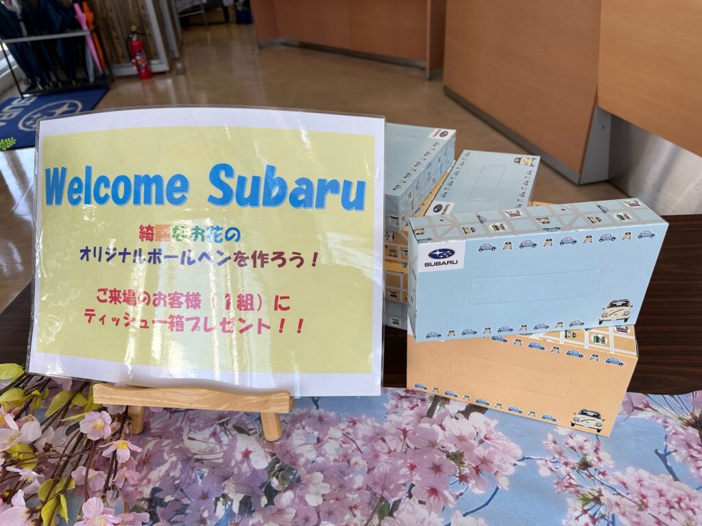 また、ご来場の方へスバル360のデザインの箱ティッシュをプレゼントしてます