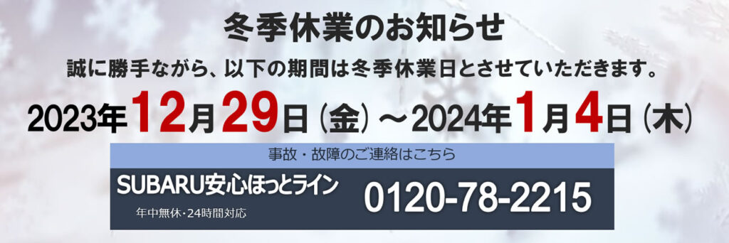 スバルでは12月29日(金)より1月4日(木)までお休みをいただいております。