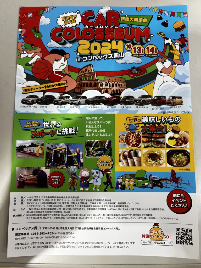 また10月13・14日にはコンベックス岡山でカーコロシアムが開催されます!