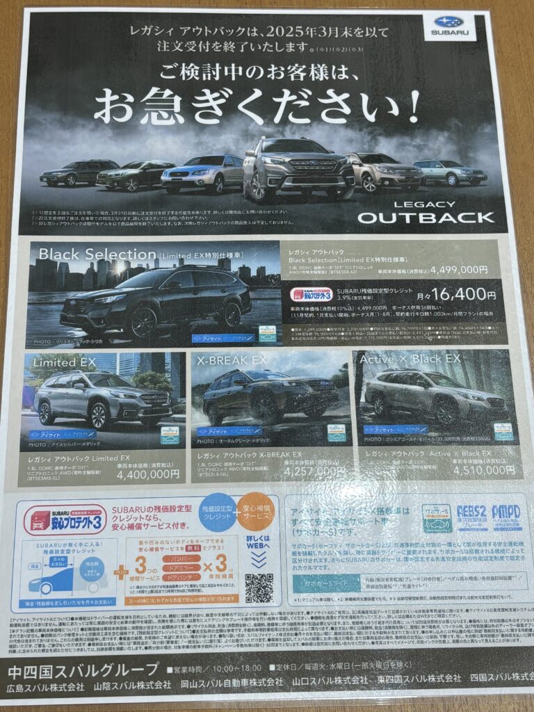 そんなレガシイですが最長でも2025年3月までで販売終了です。