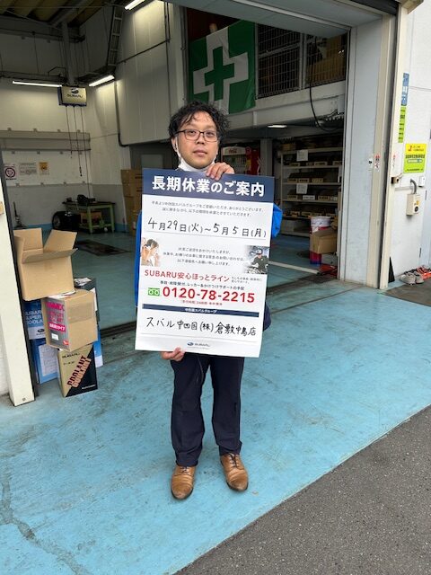 スバル中四国株式会社は4/29(火)~5/5(月)までお休みをいただきます。