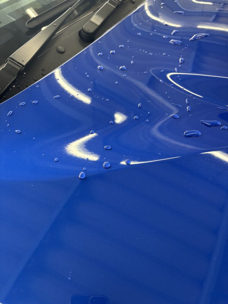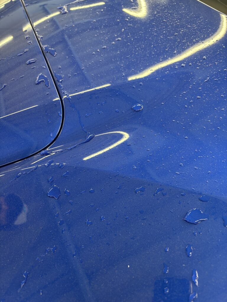 雨がボディで粒々になってくれると走行した時に流れ落ちてくれるんです!
