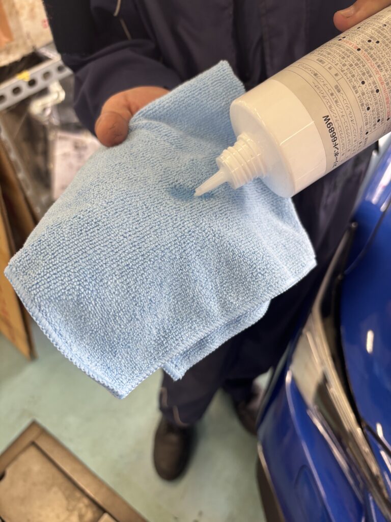 通常の洗車の後、マイクロファイバータオルに付けて、、、、