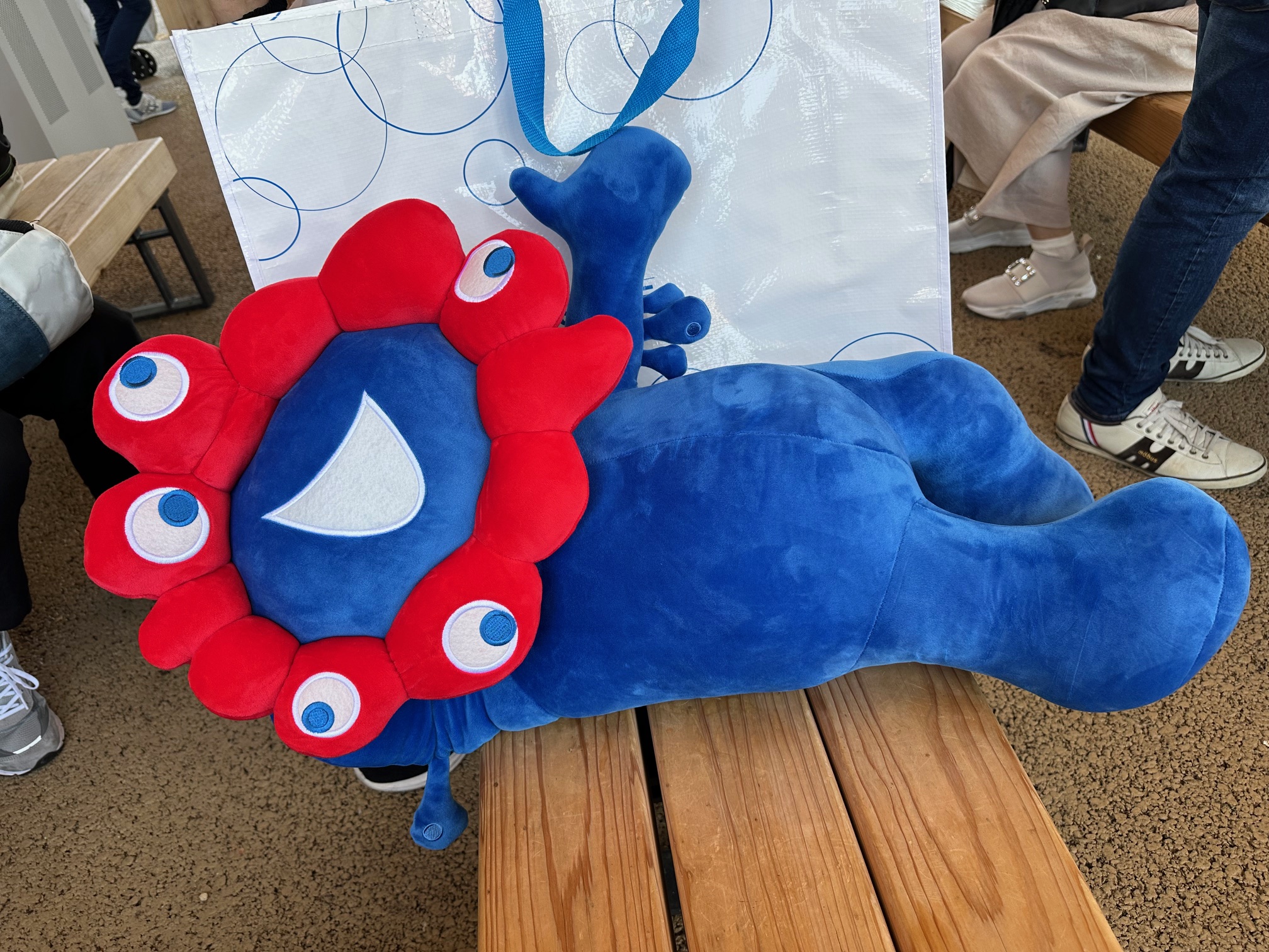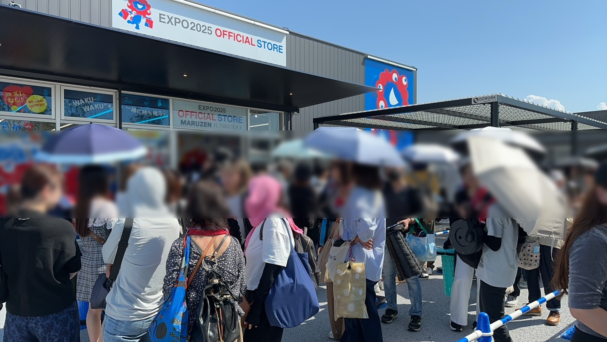 10時前に会場に入り、何よりも先に「ミャクミャクくじ」に並んだんですが、その時点で2時間待ちの案内。。。うわぁと思いながら、1時間とちょっとで抽選場所まで行けました![]()