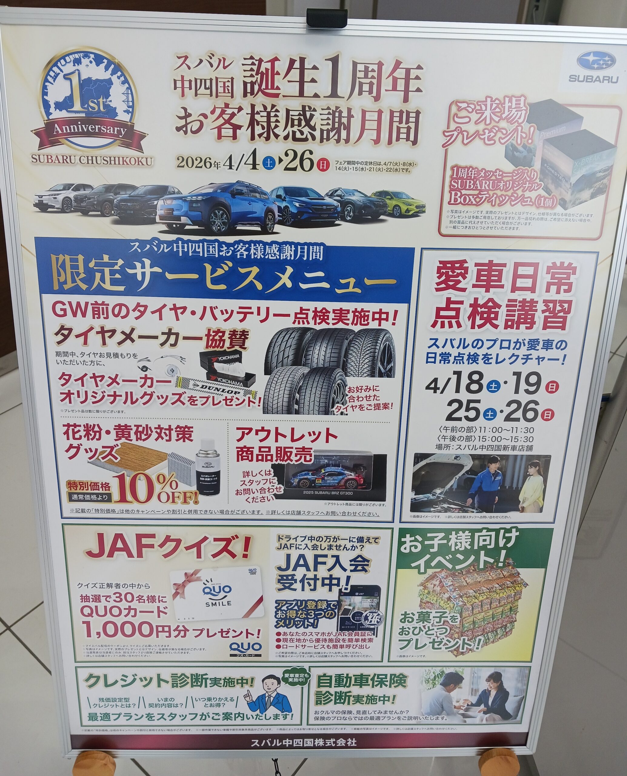 現在、スバル中四国ではお得なキャンペーンを開催しております!