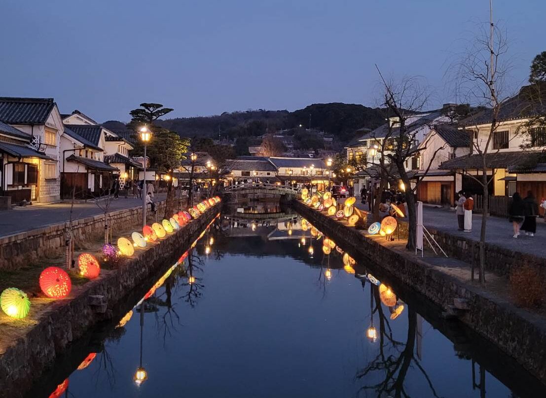 倉敷美観地区一帯が日本の宵をイメージしたあたたかい演出で彩られていました。