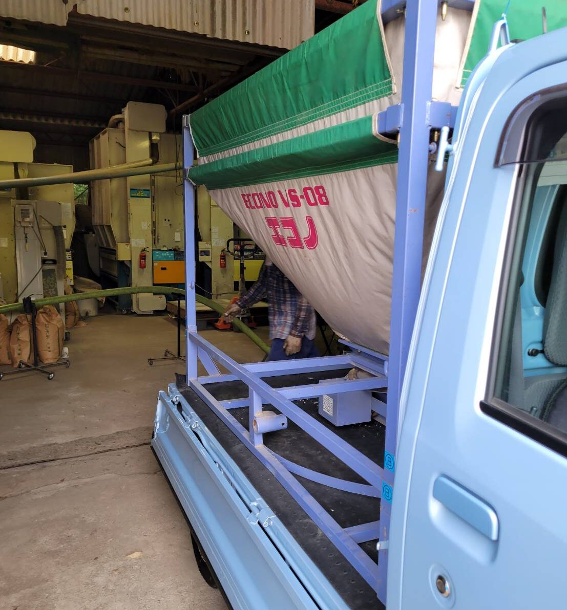 刈り取った稲は農協に持って行き、乾燥と玄米に加工しますが今回はご近所の農家さんにお願いしました。