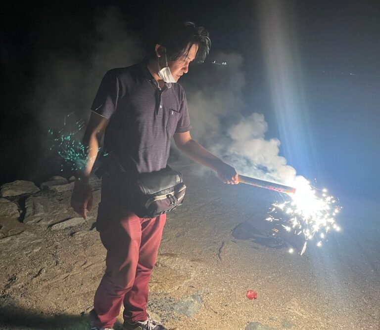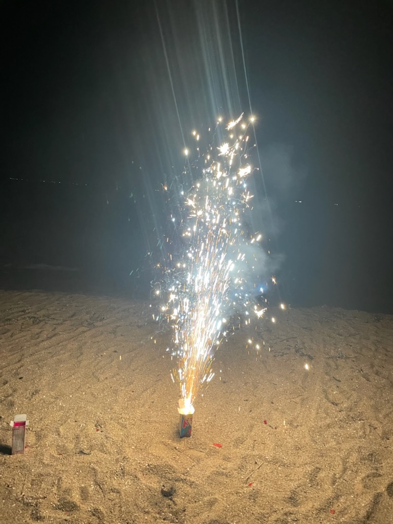 日が沈んだタイミングで全員集合したので花火開始!