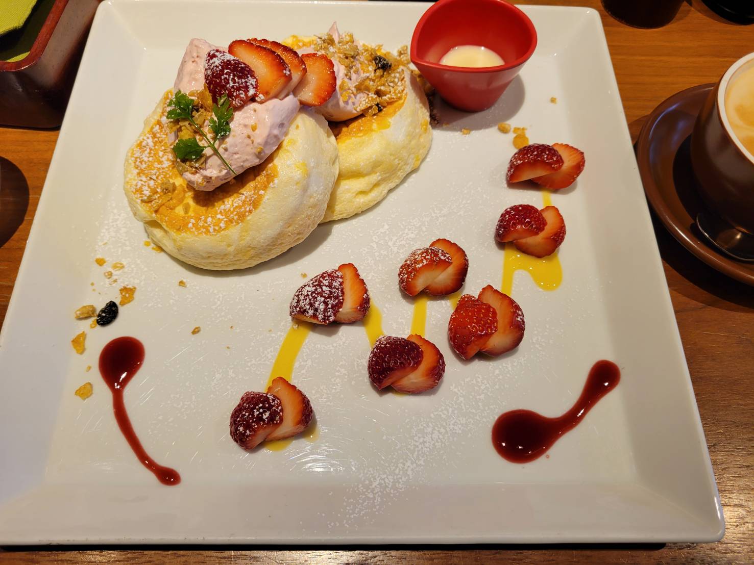 ちょうど期間限定でいちごのパンケーキがあったので堪能しました( *´艸`)
