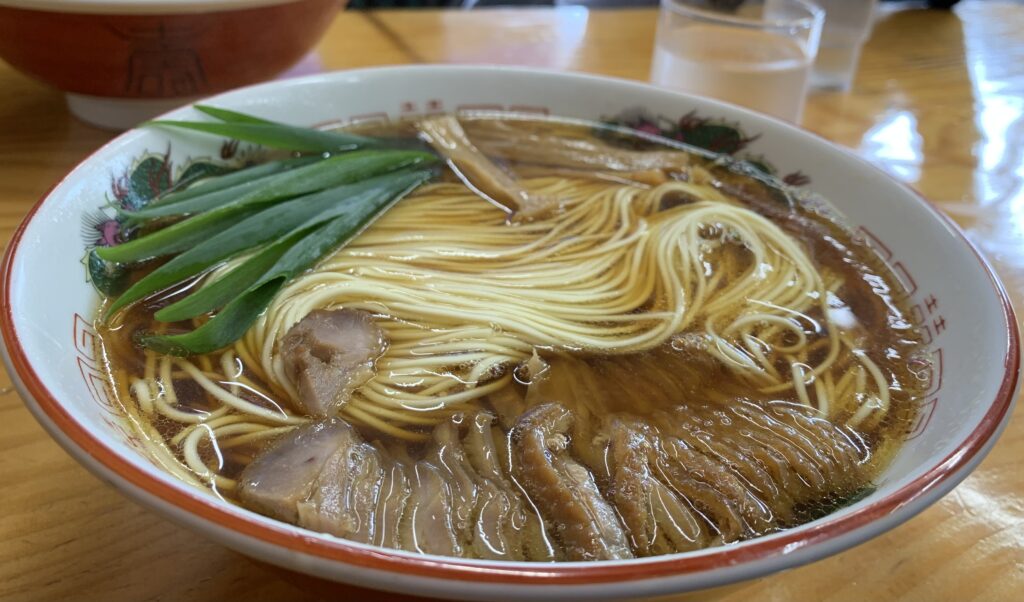 鶏ガラ醤油のスープは透き通っていて、あっさりとした味わい。