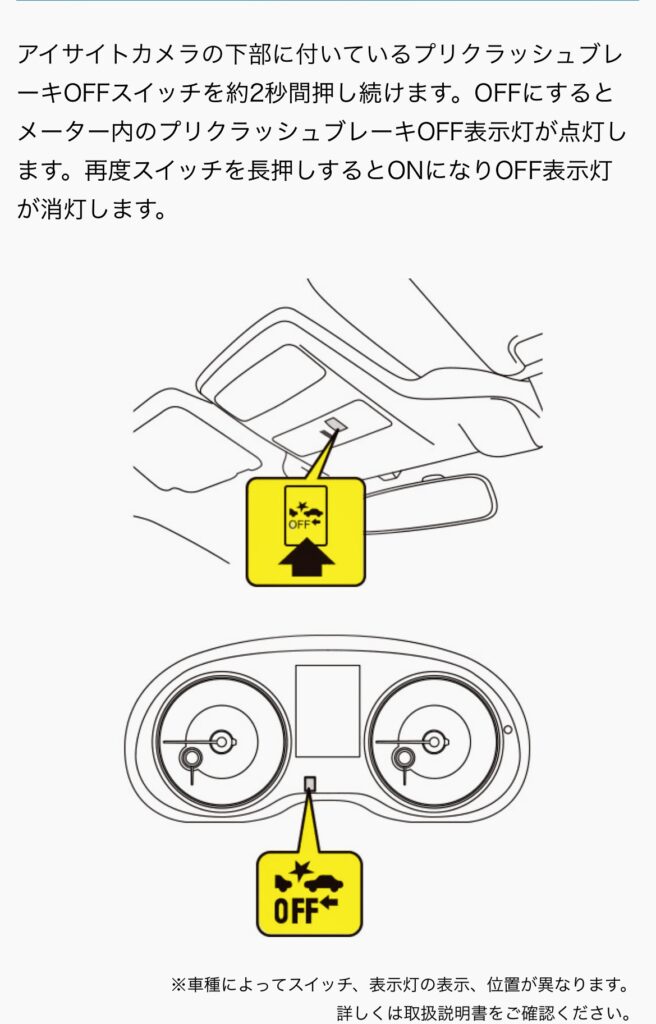 今回はアイサイト警告灯と共によく問い合せがある下記画像のスイッチについてです。