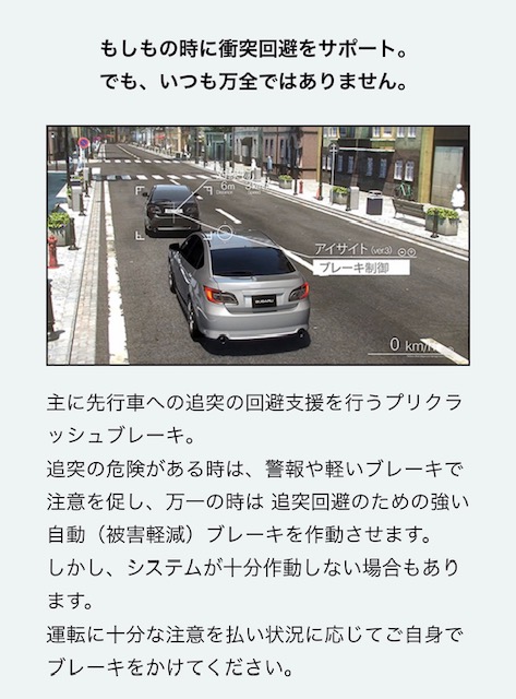 改めてアイサイトのプリクラッシュブレーキにイメージです。
