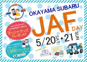 同時に20日.21日で岡山スバル全店にてJAFのイベントを開催します(⌒∇⌒)