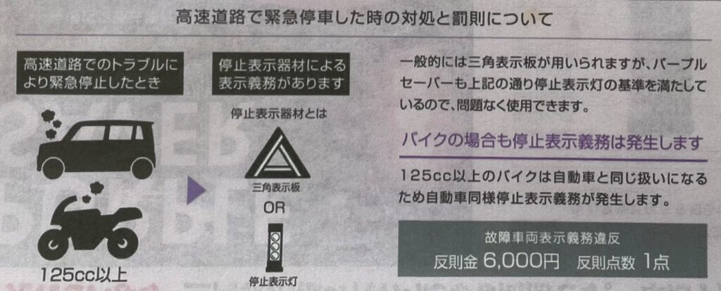 実はこれ・・・高速道路上で緊急停止した際に、停止表示器材による表示義務があるんです!!